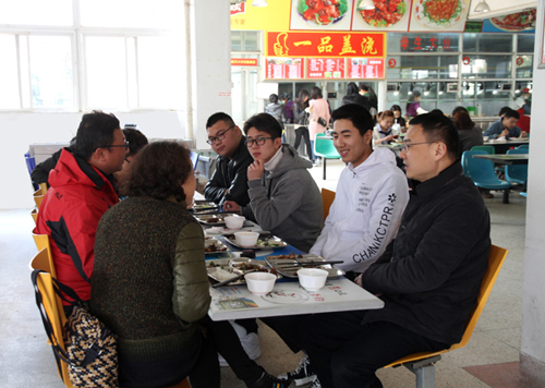 2017年3月15日中午,正值午餐时间,探花porn 第三食堂一隅洋溢着浓浓的温情。院长庄群华邀请自己作为导师负责联系的五名学生共进午餐。党政办公室主任王伟、教务处处长吕立志、学生处处长姚强也参与了本次活动。