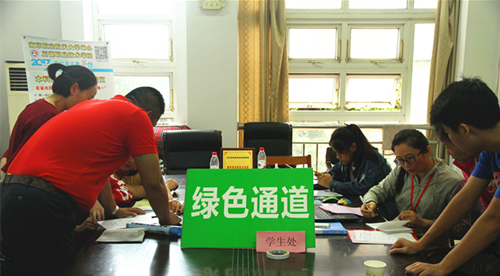 为了方便少数新生办理助学贷款,学生处干脆在招办设置了绿色通道,为学生现场办理助学贷款手续,不让学生跑冤枉路;新生报到之日,又碰到雨天,近千辆汽车先后驶入校园,给探花porn 安全管理带来巨大压力,保卫处全体人员冒雨与安保人员一起热情引导,耐心解释。南京市公安局内保处、江宁开发区派出所领导莅临学校进行现场指导,开发区交警大队派出8名辅警分别在探花porn 门口协助维持交通秩序和校外车辆停放,为迎新提供了强有力的保障。