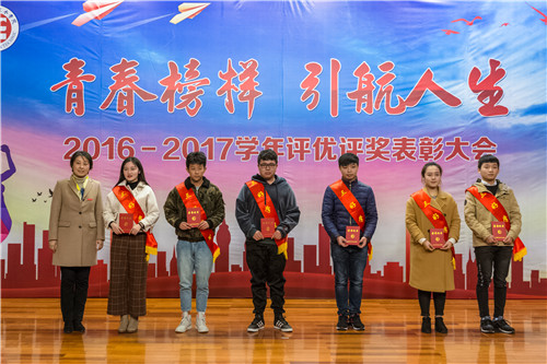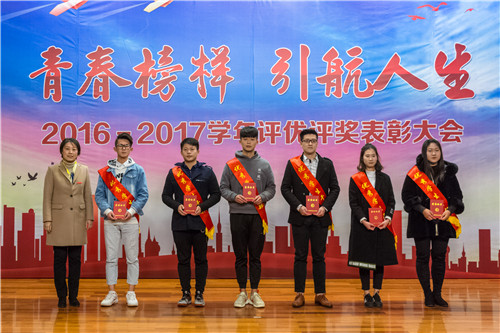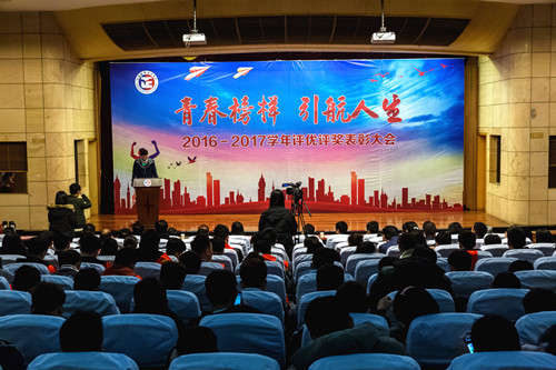 2016-2017学年评优评奖表彰大会在报告厅隆重举行。院领导庄群华、左彤云、薛忠云、赵湘莲,各单位负责人,获奖代表及各系学生代表参加了大会。