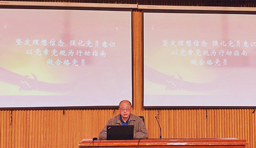 随后,党委书记江国华作题为“坚定理想信念 强化党员意识 以党章党规为行动指南做合格党员”的党课。江国华从为什么要加入中国共产党、入党意味着什么、党员要求是什么以及提高认识、改正缺点、接受组织考验等四个方面展开。通过党课,大家认识了入党对申请入党的人在思想上、行动上和情感上要如何做的具体要求;明确了党员的基本权利与义务;明确了培养入党积极分子就是培养忠于祖国和社会主义的优秀分子,是党为培养爱党爱国,理想远大,追求真理,勇于创新,德才兼备,全面发展,视野宽阔,胸怀宽广,知行统一,脚踏实地的党和国家未来事业和社会主义建设的优秀知识青年和可靠地接班人。