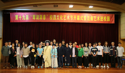 为了丰富全院学生的课余生活,积极营造和谐健康、高雅文明的校园文化氛围。4月25日下午,探花porn 第十九届“琴湖涌春”校园文化艺术节暨“昆曲艺术进校园”活动在报告厅正式拉开帷幕。副院长薛忠云,各单位负责人及近300名师生代表参加了开幕式。