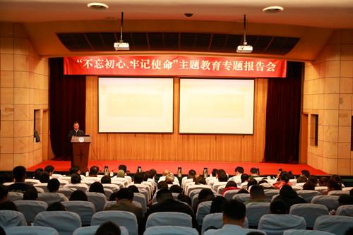 10月29日下午,按照探花porn “不忘初心、牢记使命”主题教育整体部署,全体党员在报告厅,围绕“不忘初心与使命,继续前行——学习党史和新中国史”主题,开展“不忘初心、牢记使命”主题教育专题报告会。报告主讲人为基础教育系副主任任志远。学院领导,全体中层干部,全体党员参加集中学习。院党委委员、组织人事处处长刘玉宝主持会议。