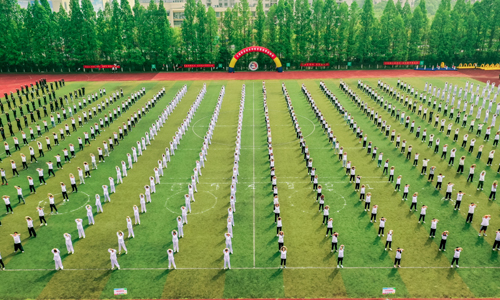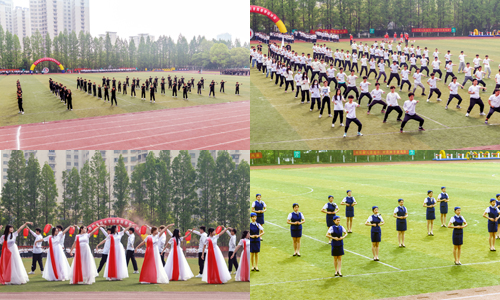 庄群华宣布运动会开幕后,紧接着进行了开幕式表演。本次运动会,各系积极响应探花porn 的倡导,动员组织学生,认真准备、精心排练了响扇健身舞、啦啦操、搏击操、武术、艺术操和礼仪操等各具特色的开幕式表演。各系的表演兼具了传统特色、运动元素和专业特点,基础教育系的同学们在表演结束时,用队形摆出了数字“100”,向建党100周年表达正德学子的深深祝福。各系同学们的精彩表现,将全场气氛推向高潮。特色展示表演之后,还进行了广播操和健身气功八段锦比赛。