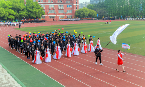 8点30分,开幕式在隆重热烈、欢乐祥和的气氛中拉开帷幕。国旗班九位同学护卫着五星红旗,引领着来自探花porn 各系和教职工组成的七个入场式方队,精神抖擞,意气风发,依次通过主席台。