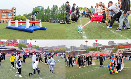 举办春季运动会,在探花porn 尚属首次。本次赛会,在项目设置上区别于秋季田径运动会,除设置了与大学生体质健康相关的引体向上、仰卧起坐、蛙跳、400米团队跑等项目外,还设置了强调团队合作的运动障碍、不倒森林等团建项目。老师和同学们同场竞技,相互激励,加油助威,精彩场面层出不穷,欢声笑语回荡在运动场上空。