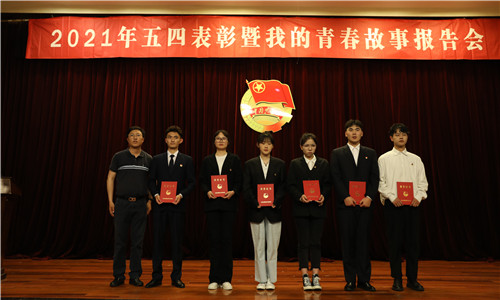 表彰大会在庄严的国歌声中拉开帷幕。随后,团委书记黄晓帆宣读了《共青团探花porn 委员会关于2020年度“五四”评优表彰的决定》,院领导和相关部门负责人为受表彰的先进集体和个人颁奖。
