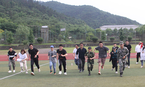 21日下午,在素质拓展教员的带领下,大家分成两组,参加了“盲人方阵”、“极速60秒”等素质拓展训练。虽然天气炎热,辅导员们在训练中热情高涨,通过沟通协作、团队努力,不断战胜自我、激发潜能,圆满完成了各项训练。