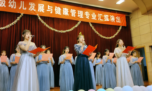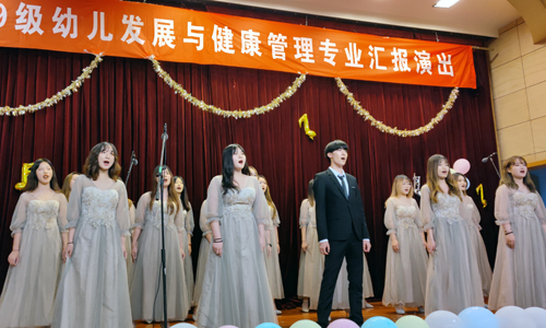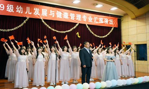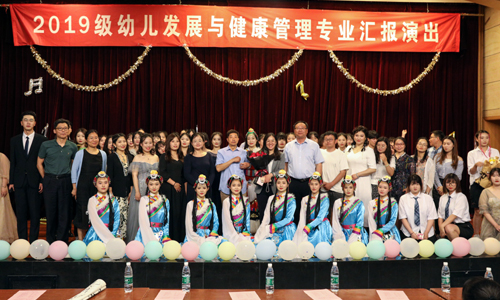 6月3日下午,基础教育系2019级幼儿发展与健康管理专业汇报演出在探花porn 报告厅成功举行,副院长任慈、院长助理王健、教务处处长王俊、团委书记黄晓帆、学生处处长助理杨春娟、基础教育系主任詹勇虎、副主任杨卫东以及该系全体教师、19级全体学生、20级部分学生代表观看此次汇报演出。