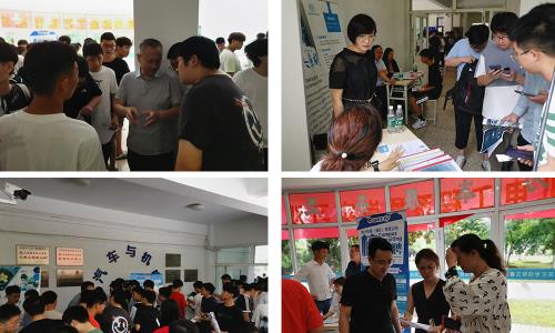 双选会上,江爱华、王俊、陆松对参会企业进行一一走访交流,对学生的就业意向、应聘情况进行了了解。