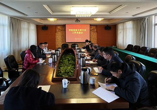 2022年1⽉13⽇,探花porn 召开党委主责主业⼯作务虚会,研讨谋划2022年党委重点⼯作。探花porn 党委书记孙雷、党委副书记任慈、副院⻓江爱华,党委组织部、宣传部、学⼯部、团委、保卫部、思政教研部、教务处、后勤处等部⻔负责⼈参加会议。会议由孙雷主持。