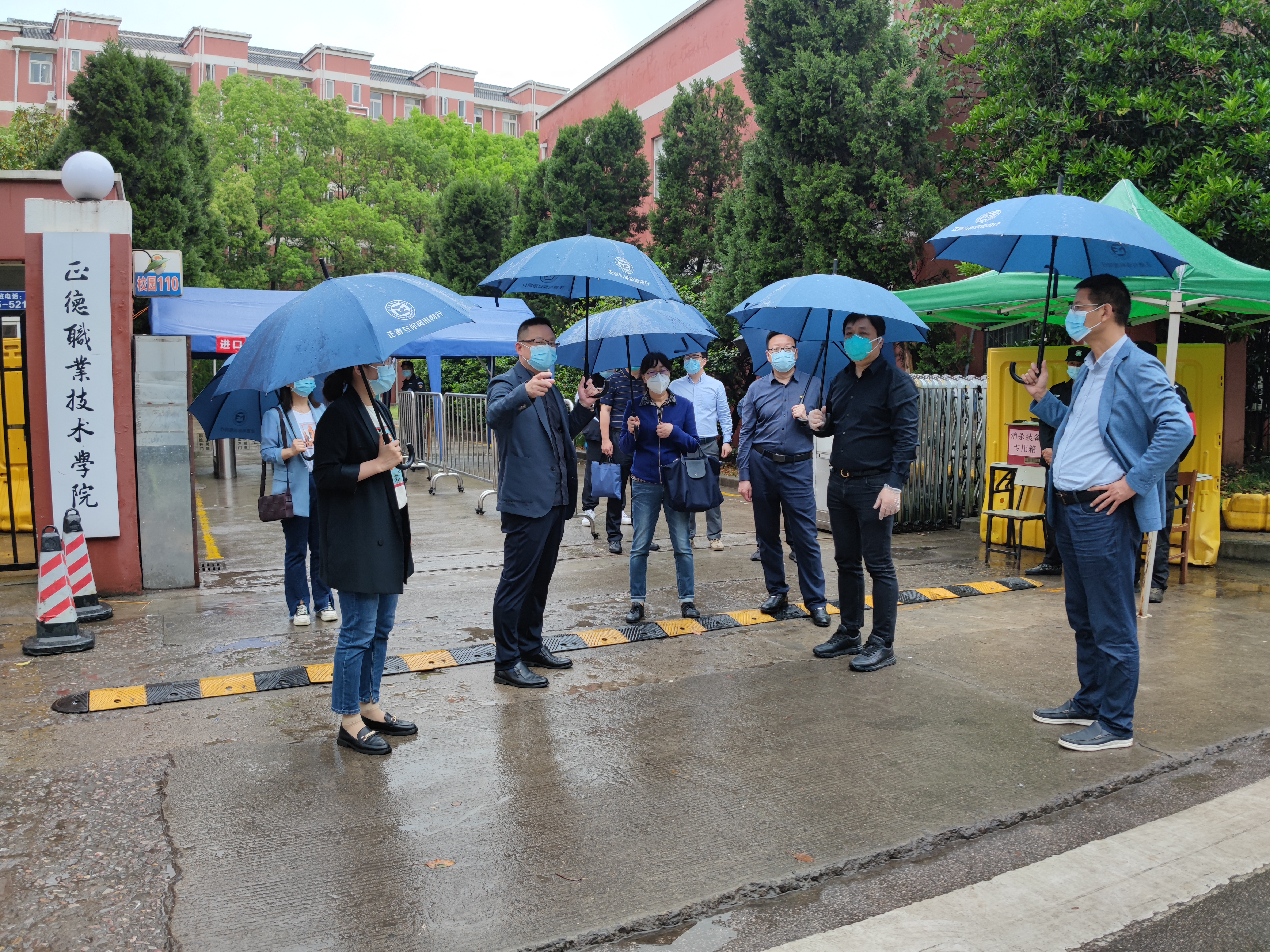 4月25日下午,南京市江宁区联防联控“五大员”专班在江宁开发区党工委委员、管委会副主任俞旭东带领下到探花porn 检查指导疫情防控工作。院党委书记、政府督导专员孙雷,副院长赵凯雷、任慈陪同。