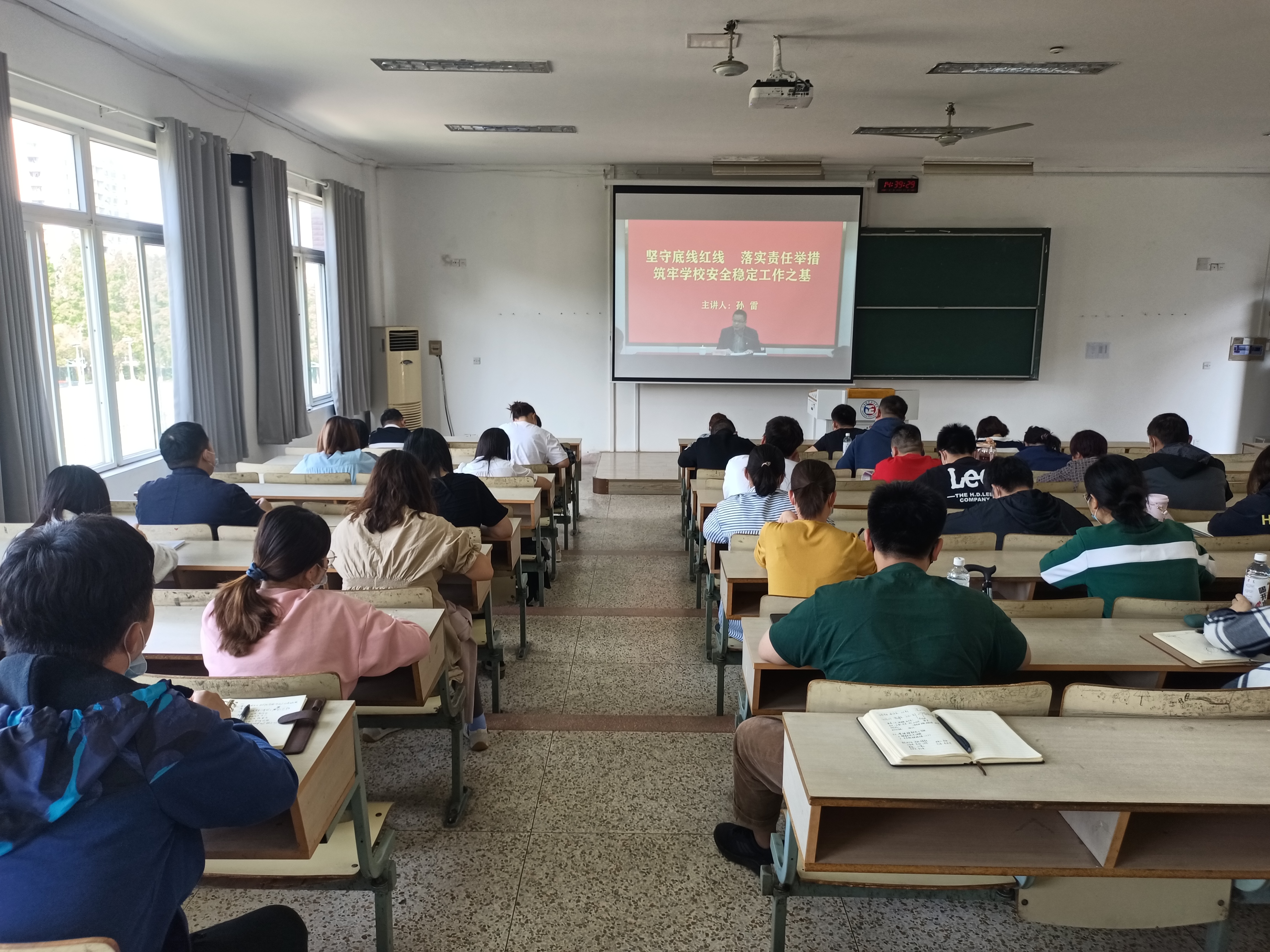 暮色苍茫看劲松,乱云飞渡仍从容。越是面对艰难险阻,越要有勇往直前的决心和勇气。孙雷最后强调,安全稳定工作责任重于泰山,而且永远在路上,全体师生员工必须深刻领悟“两个确立”的决定性意义,胸怀“两个大局”,牢记“国之大者”,增强“四个意识”,坚定“四个自信”,做到“两个维护”,不断增强政治判断力,政治领悟力,政治执行力。全校上下必须树牢安全稳定底线思维意识,要按照意识是否牢固、体系是否完善、责任是否压实、作风是否严实、规则是否践行、思想是否麻痹、本领是否恐慌等问题进行自查自省,查漏补缺、及时整改,确保校园安全稳定,以实际行动迎接党的二十大胜利召开。