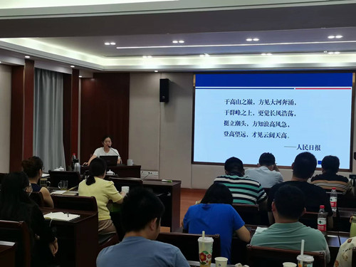 院党委副书记、副院长任慈以“视野与仰望”为题给大家带来了一场专题课。她从美国对中国的战略遏制、中国对比美国制度的优越性、中美贸易战争、中国科技强国之路、中国的朋友圈等五个方面向大家详细讲述了中美世纪博弈,她指出,在中国共产党的带领下,中国人民一定能打赢本世纪最大的一场硬仗。