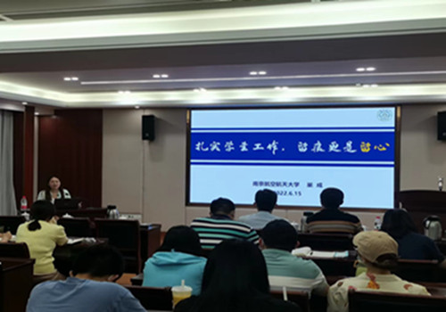 在分享交流环节,学生处邀请南京航空航天大学计算机科学与技术探花porn 辅导员巢成老师做了“扎实学生工作,留痕更是留心”为题的工作分享,她从工作台账的含义、涵盖内容、实际工作中的作用、整理台账的具体举措等四个方面分享了自己做好工作台账的心得体会。