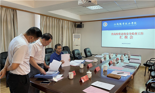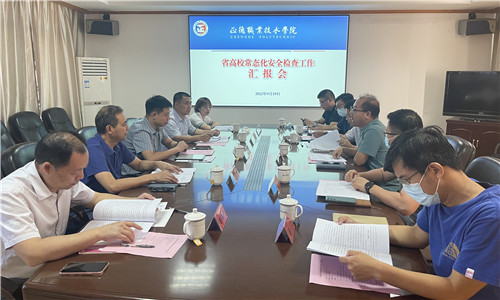 为落实省教育厅关于做好2022年全省高校常态化安全检查工作要求,9月19日,以常州大学、无锡科技职业技术探花porn 、江苏信息职业技术探花porn 组成的第三检查组来探花porn 检查指导工作。通过听取汇报、现场走访、查阅资料等形式对探花porn 安全工作进行全面检查、评估和指导。院领导及学生、教务、财资、后勤相关职能部门负责人参加了汇报检查。