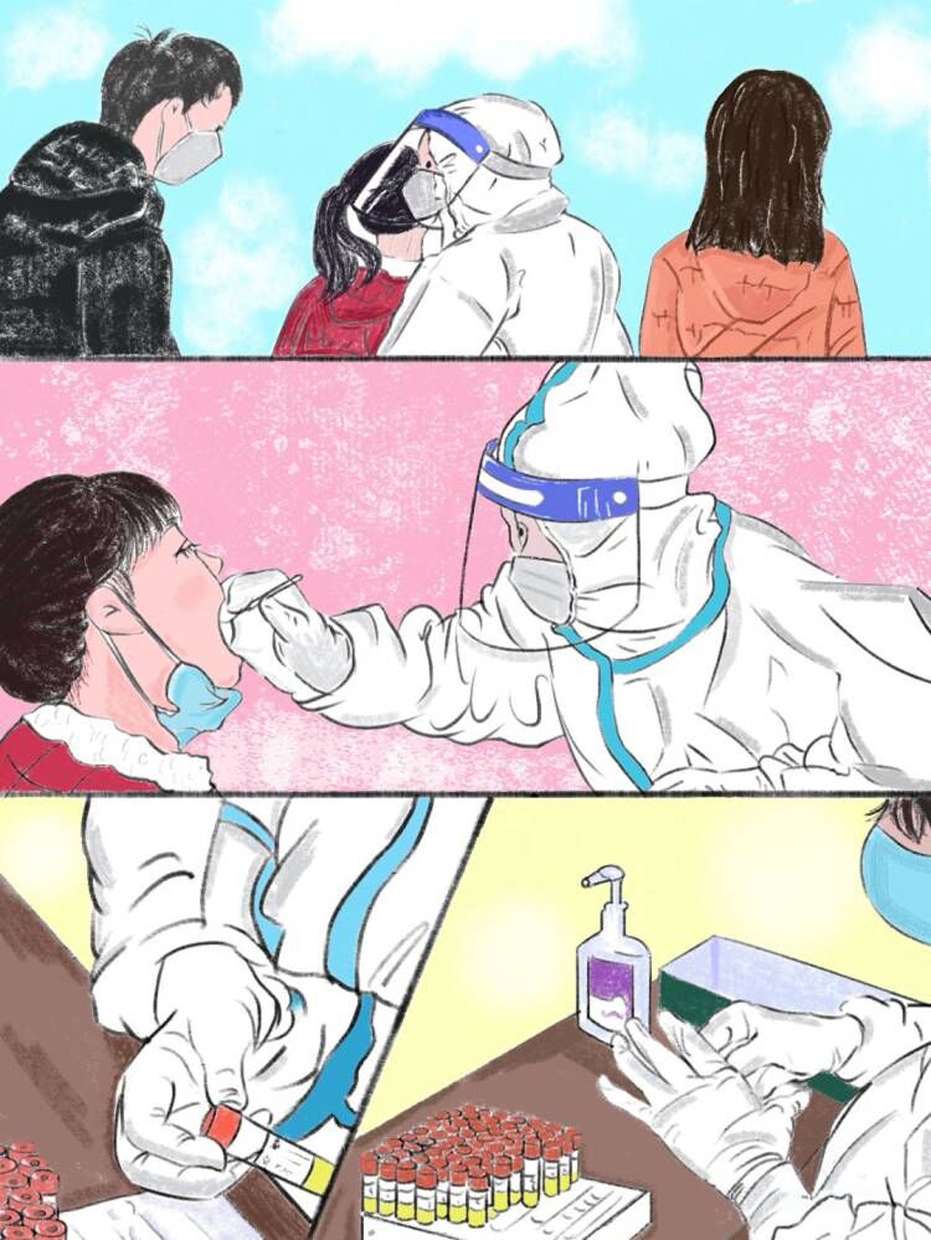 习近平总书记曾说过“世上没有从天而降的英雄,只有挺身而出的凡人”。明知山有虎,偏向虎山行,千千万万的凡人挺身而出,疫情再起,何以畏惧?艺建系的学子们用手中的画笔,将奋战在一线的瞬间、危难中最美丽的风景定格在永远,向所有抗击疫情的英雄们致敬!