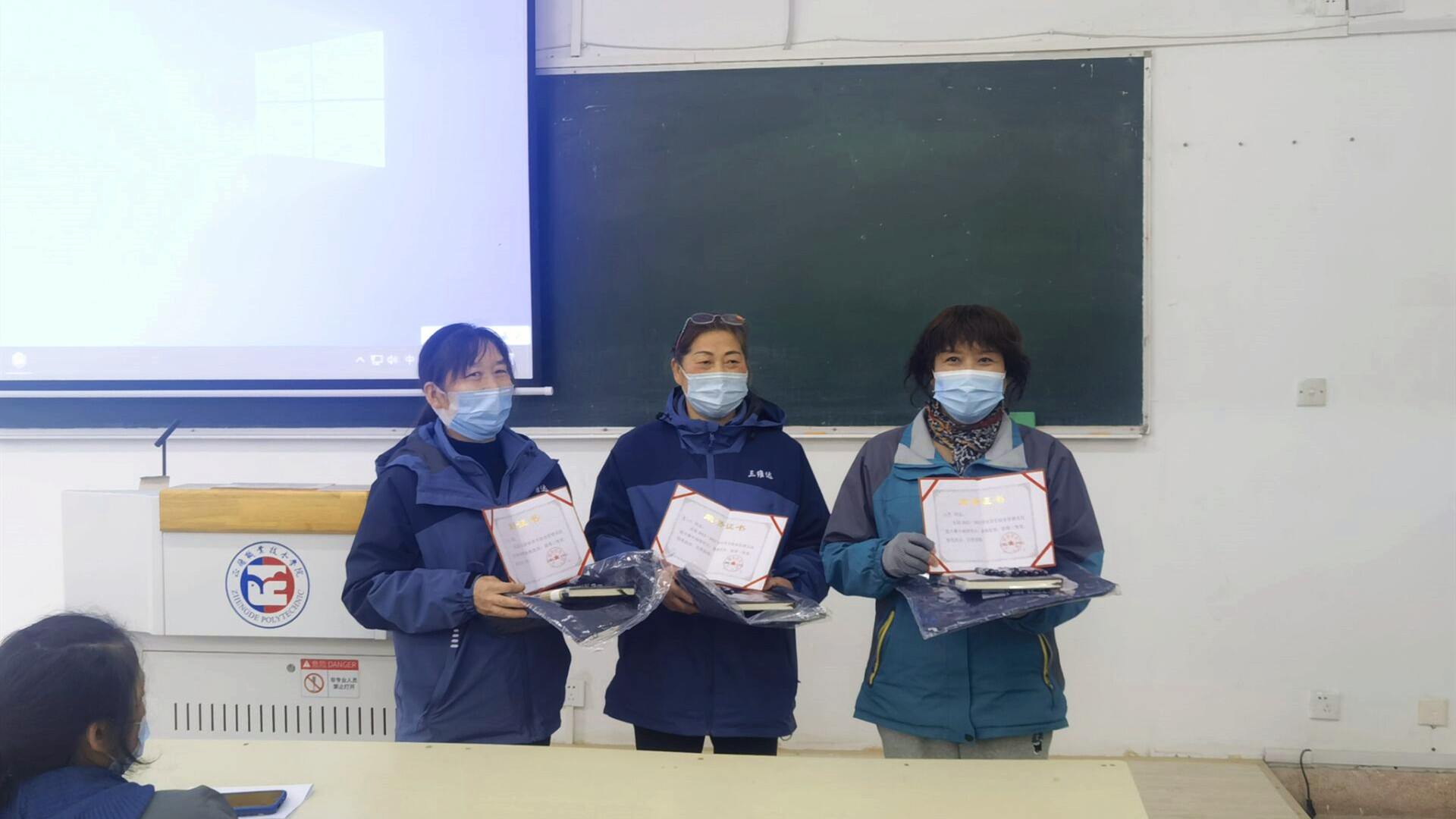 参赛宿管员赛前总结工作经验积极备赛,比赛中全情投入认真答题。在第一轮比拼中,北10栋宿管员段学飞提前完成作答并且取得了笔试满分的成绩,赢得了现场热烈掌声。在第二轮学生辨识环节,每位宿管员们要在3分钟内对投影屏幕上的20名学生日常照片一一辨别并报出该生姓名,最终有6名宿管员辩认出全部学生的信息。赢得大家阵阵掌声。经过激烈角逐,最终北6栋管理员任远获得一等奖,北11栋杜大花、南2栋刘贞获得二等奖,北8栋徐慧、北1栋霍玉红,北2栋郑洋芳获得三等奖。