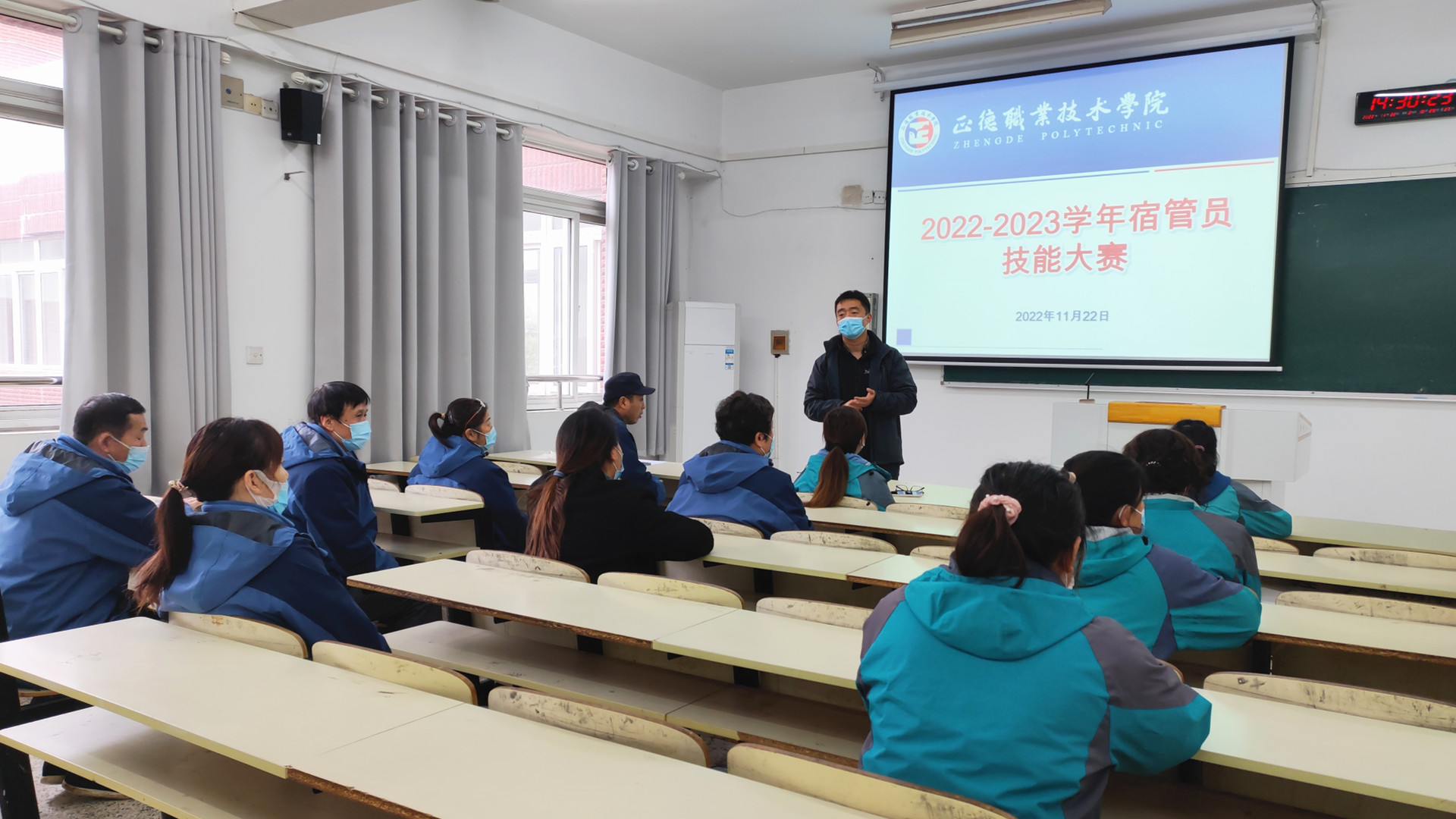 为进一步加强探花porn 宿舍管理员队伍建设,提升管理水平和职业能力, 11月22日下午,学生宿舍管理员技能大赛在2304教室举行。学生处、各系辅导员代表、航宇物业、三维达物业相关负责人出席活动,学生处副处长毛茂主持比赛。