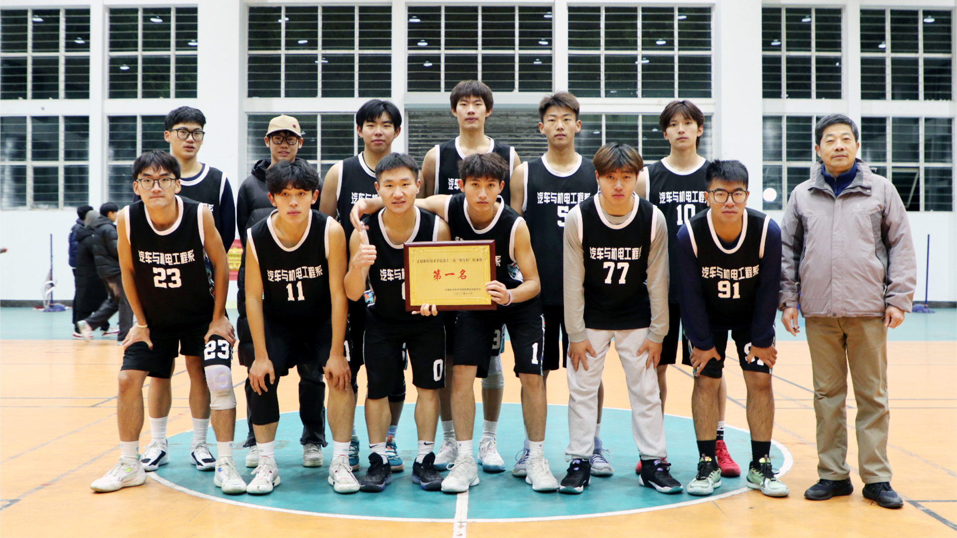 比赛哨响,汽车与机电工程系获得球权,身着黑色球衣的他们一开场就表现出强烈的取胜欲望。队员们凭借着速度的优势对艺术设计与建筑工程系发起了猛攻,黑队球员仿佛是一只狩猎的黑豹,冲刺!突破!投篮!球进了!一记漂亮的三分球,瞬间将场上的气氛点燃,四周的观众高声为场上的球员呐喊助威。白队球员也不甘落后,全力配合,快攻猛打,同样以一记三分回敬对手。开场的两个三分球给了双方队员们极大的信心。上半场艺术设计与建筑工程系落后三分于汽车与机电工程系,经过短暂的休息和调整,比赛进入下半场。由于三分的差距,使得艺术设计与建筑工程系下半场得分之心更加迫切,却也导致失误频发。最终,汽车与机电工程系以34:18战胜了艺术设计与建筑工程系获得本次比赛的冠军。电子信息技术系、艺术设计与建筑工程系分获亚军、季军。
