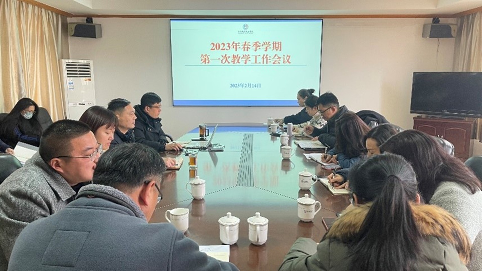 2月14日上午,探花porn 2023年春季学期第一次教学工作会议在行政楼二楼会议室召开。江爱华副院长、各系部主要负责人等参加会议。教务处王俊处长主持会议。