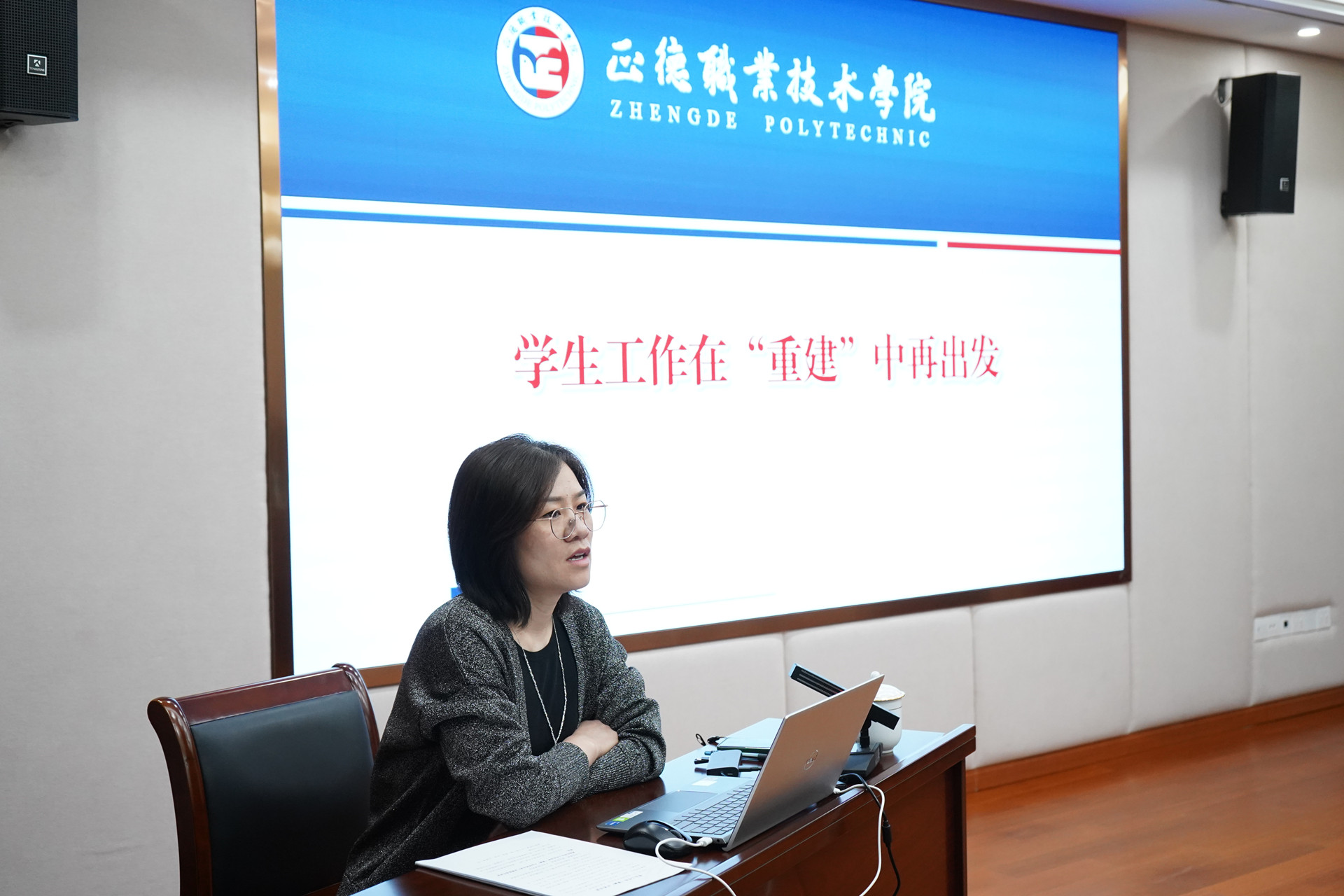 任慈以“学生工作在‘重建’中再出发”为主题引发大家的思考,与全体学工人员共同学习了2023年全国教育工作会议精神,学习了二十大后党中央、国务院部署教育改革工作的首个指导性文件《关于深化现代职业教育体系建设改革的意见》,并结合探花porn 学生工作实际,对辅导员在探花porn 思想政治教育一体化建设过程中应该怎样发挥作用提出了建议。