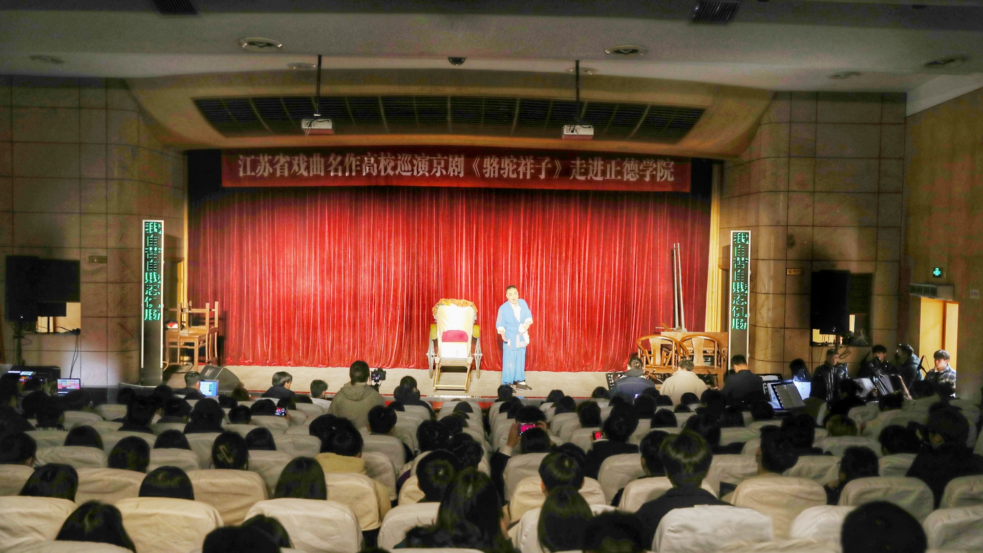 粉墨青春,青春有戏!为认真贯彻落实中央、省关于“戏曲进校园”工作的部署要求,弘扬中华优秀传统文化,增强文化自信。3月2日下午,由江苏省京剧院创作的《骆驼祥子》在报告厅精彩上演。