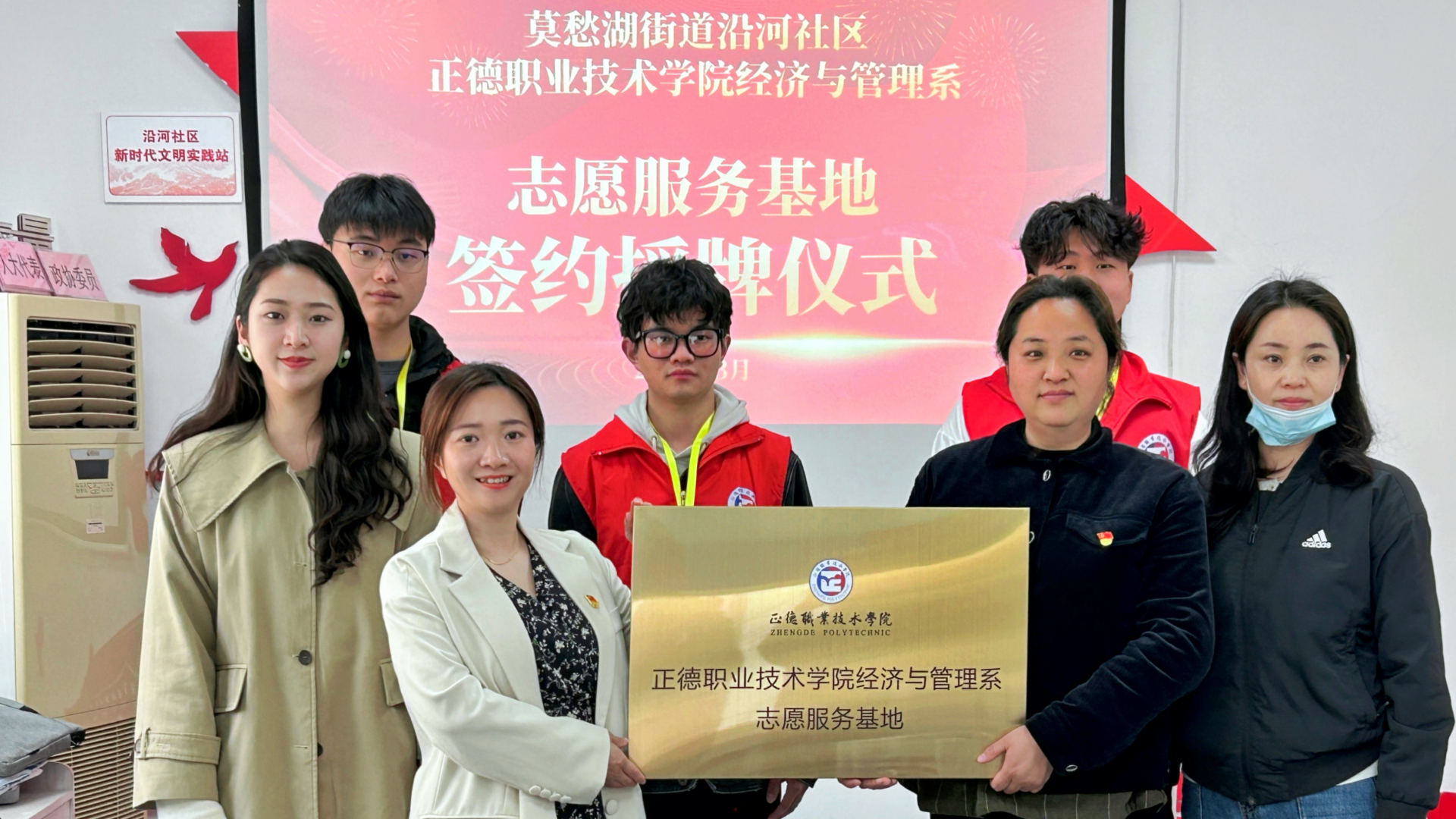 “大学生社区实践计划”活动是学校教育与社会教育有机结合的重要载体。为深入学习党的二十大精神,贯彻落实习近平总书记关于青年工作的重要思想和《共青团中央办公厅关于印发<社区青春行动方案>的通知》要求,进一步提高青年志愿者的奉献精神和服务意识,3月15日下午,探花porn 经济与管理系与建邺区莫愁湖街道沿河社区志愿服务基地签约授牌仪式顺利举行。参加本次仪式的有莫愁湖街道沿河社区党委书记苏丽敏,经济与管理系党支部书记雷杨、团总支书记倪冰慧以及“小雨滴”志愿者代表等10人。