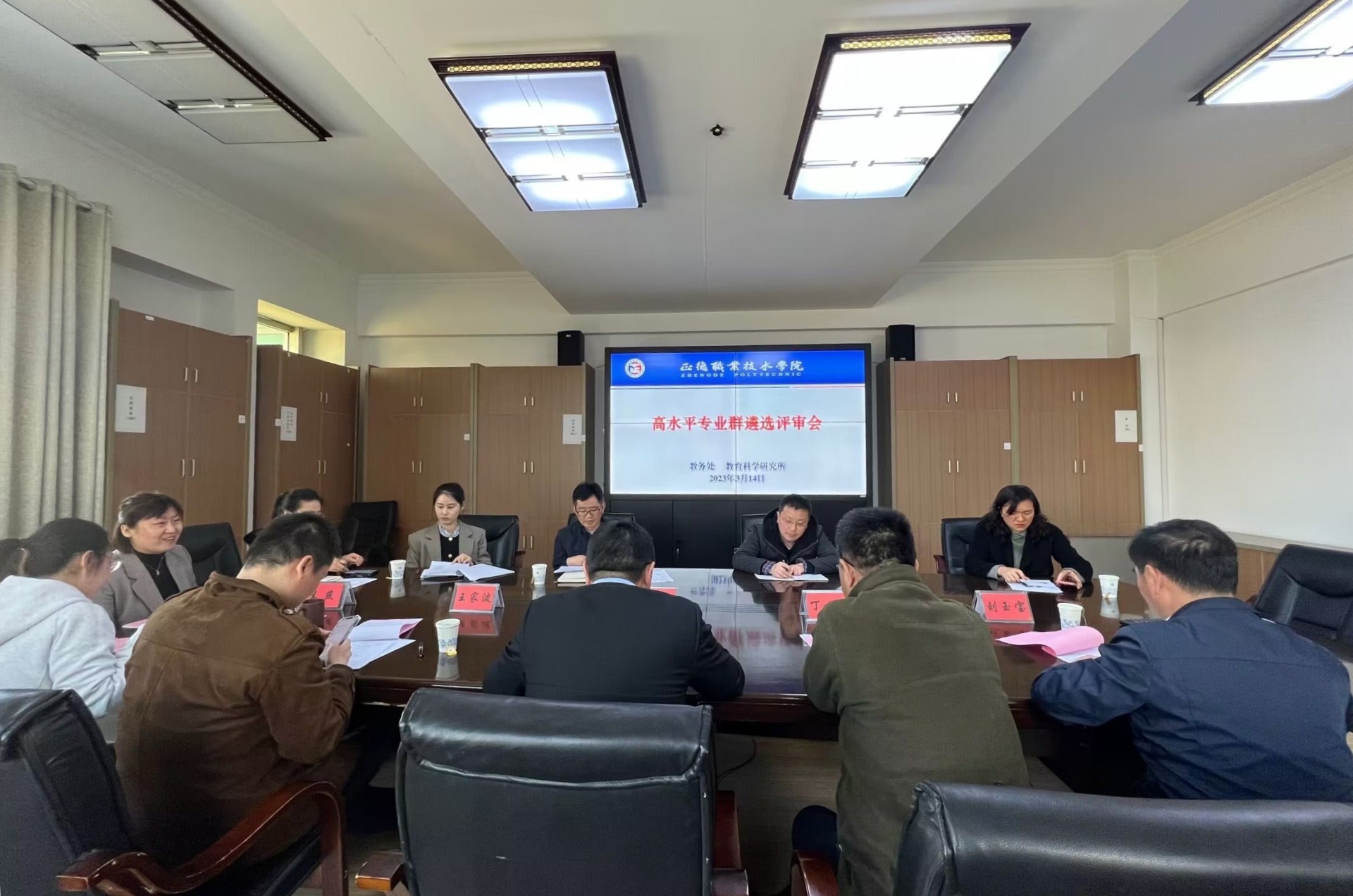 各专业群负责人依次进行汇报展示,重点汇报专业群结构、专业群建设基础、专业群建设内容、预期成效和建设保障等。评委专家组认真听取了各负责人的汇报,针对申报专业群及建设方案中存在的主要问题提出质疑,汇报人进行答辩。针对各专业群的汇报内容,专家们与各专业群负责人进行了深入充分的交流,会议持续了3个小时。汇报与交流后,评委专家组进行了集体合议和打分。