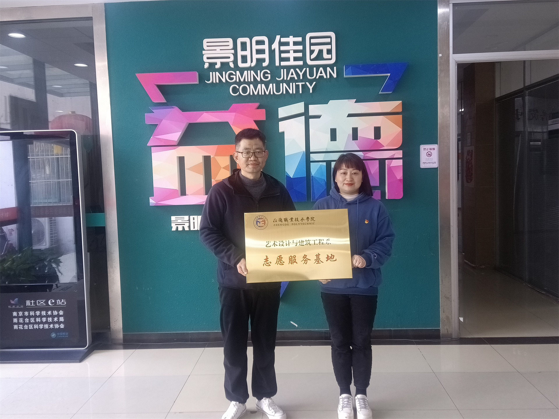 为加强校地共建、区域联建,帮助大学生更好了解社会实际、服务人民群众、提高社会化能力,切实加强大学生社会实践与志愿服务工作,3月28日下午,在铁心桥街道景明佳园社区会议室,艺术设计与建筑工程系与铁心桥街道景明佳园社区联合举办了隆重的“大学生社会实践基地”合作共建挂牌仪式。艺术设计与建筑工程系副主任(主持工作)周卫、系党支部陈宏波书记、辅导员程启芳及景明佳园社区党委副书记刘思思、景明佳园社区党委委员李正红等出席了仪式,部分社会实践团队学生代表参加了仪式。仪式由李正红主持。