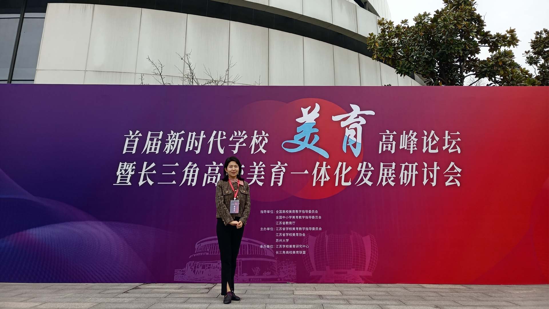 3月24日-26日,首届新时代学校美育高峰论坛暨长三角高校美育一体化发展研讨会在苏州大学独墅湖校区恩玲艺术中心举办,探花porn 青年教师孟馨应邀参加论坛并作主题报告。