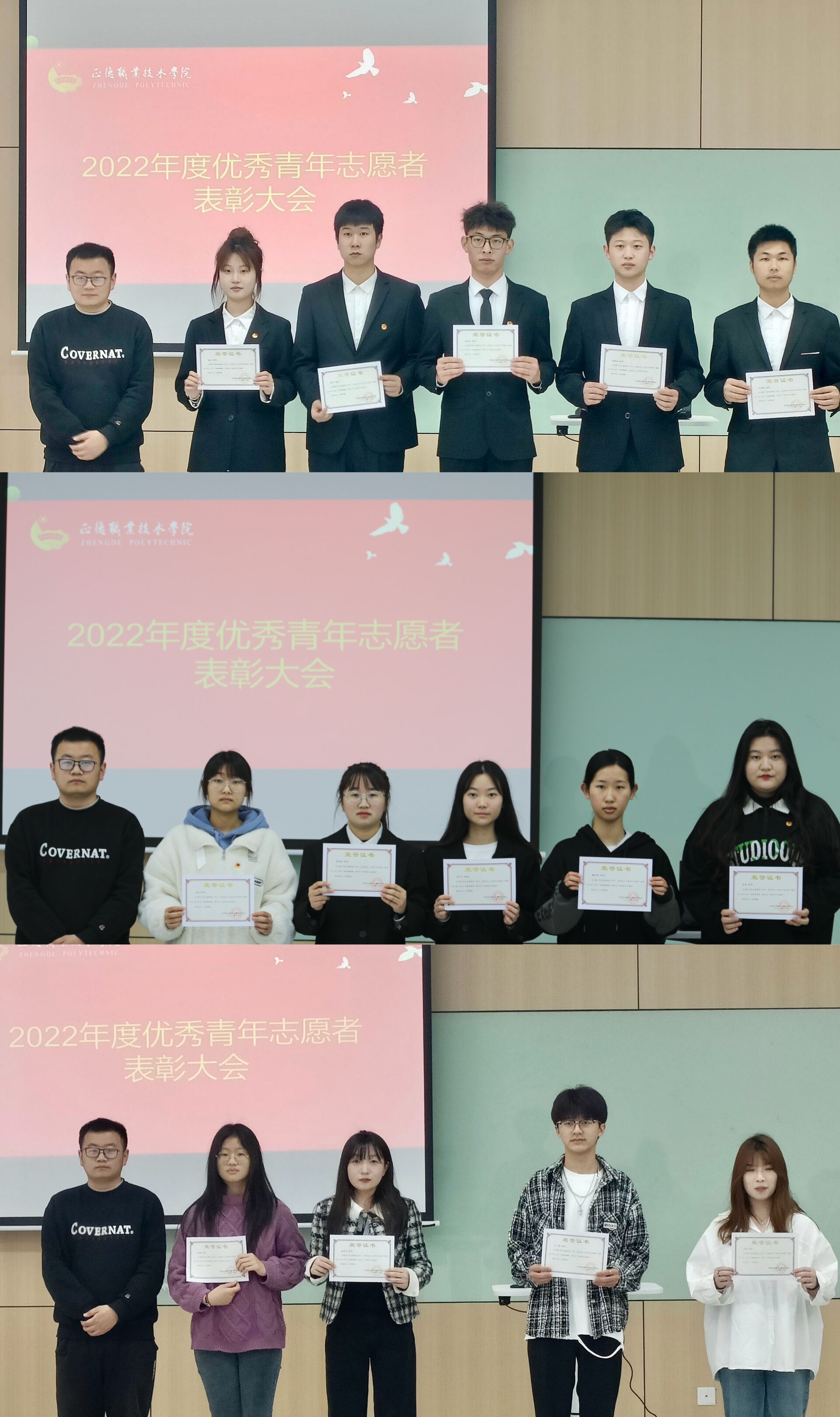 为深入学习宣传贯彻习近平新时代中国特色社会主义思想,大力营造学习宣传贯彻党的二十大精神的浓厚氛围,进一步弘扬“奉献、友爱、互助、进步”的志愿服务精神,推动探花porn 青年志愿服务事业广泛深入发展,院团委组织开展了2022年度全院优秀青年志愿者评选工作,经基层审核、公开答辩,4月3日探花porn 在9205教室对院系优秀青年志愿者代表进行集中表彰。