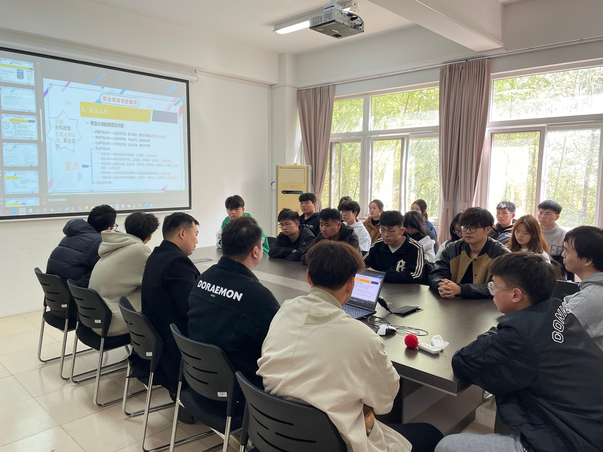 随后,徐嘉乐同学结合自己参赛实际案例为同学们讲解规划书的撰写要求及注意事项,帮助同学们掌握职业生涯规划技能,进一步清晰生涯规划的目的和意义。