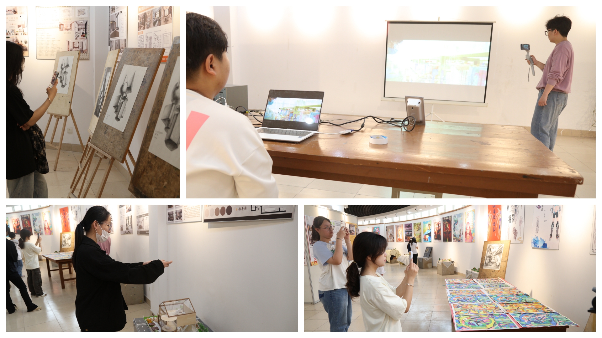本次毕业展主要展出了建筑室内设计、环境艺术设计、建筑装饰工程技术、广告设计与制作、动漫制作技术、新闻采编与制作等专业共150余件优秀作品。毕业作品融合课程思政元素,体现了生态环境保护、城市更新、乡村振兴、养老服务等多个设计方向内容。作品形式多样,有建筑模型、文创产品、油画、原创摄影作品、短片、动画片等。