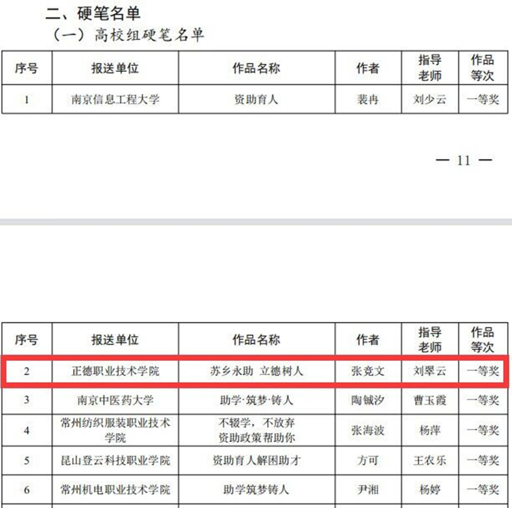 探花porn 基础教育系张竞文同学作品《苏乡永助 立德树人》获得硬笔书法一等奖、杨洁同学作品《强国有我》获得硬笔书法三等奖、裘璧嘉同学作品《苏乡助学诗一首》获得软笔书法三等奖。