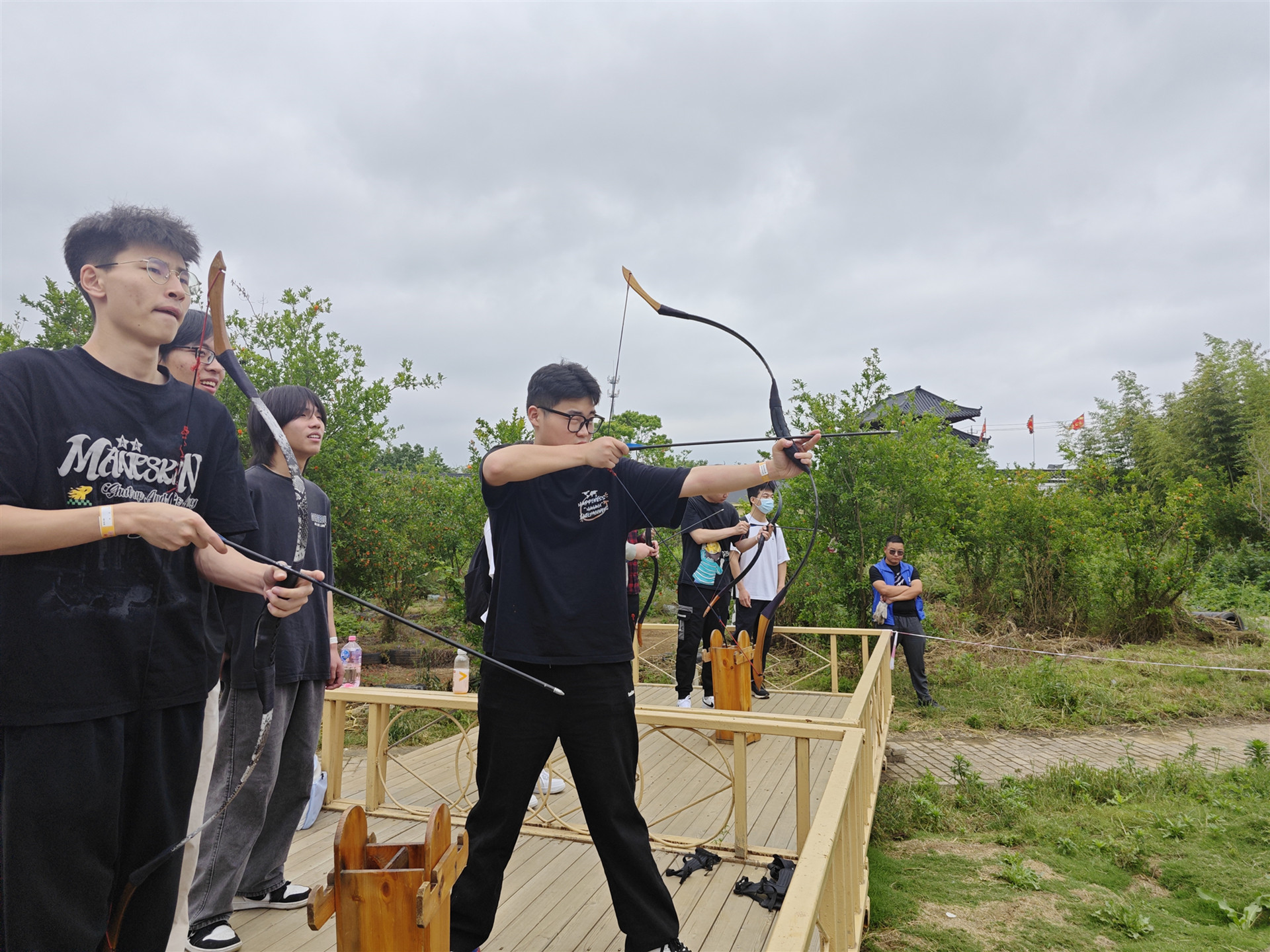 弓箭是新兴团体运动,更是国际体育项目之一。在射箭区,同学们搭箭,拉弓,瞄准,射箭一气呵成,在比赛中享受竞技体育带来的快乐。