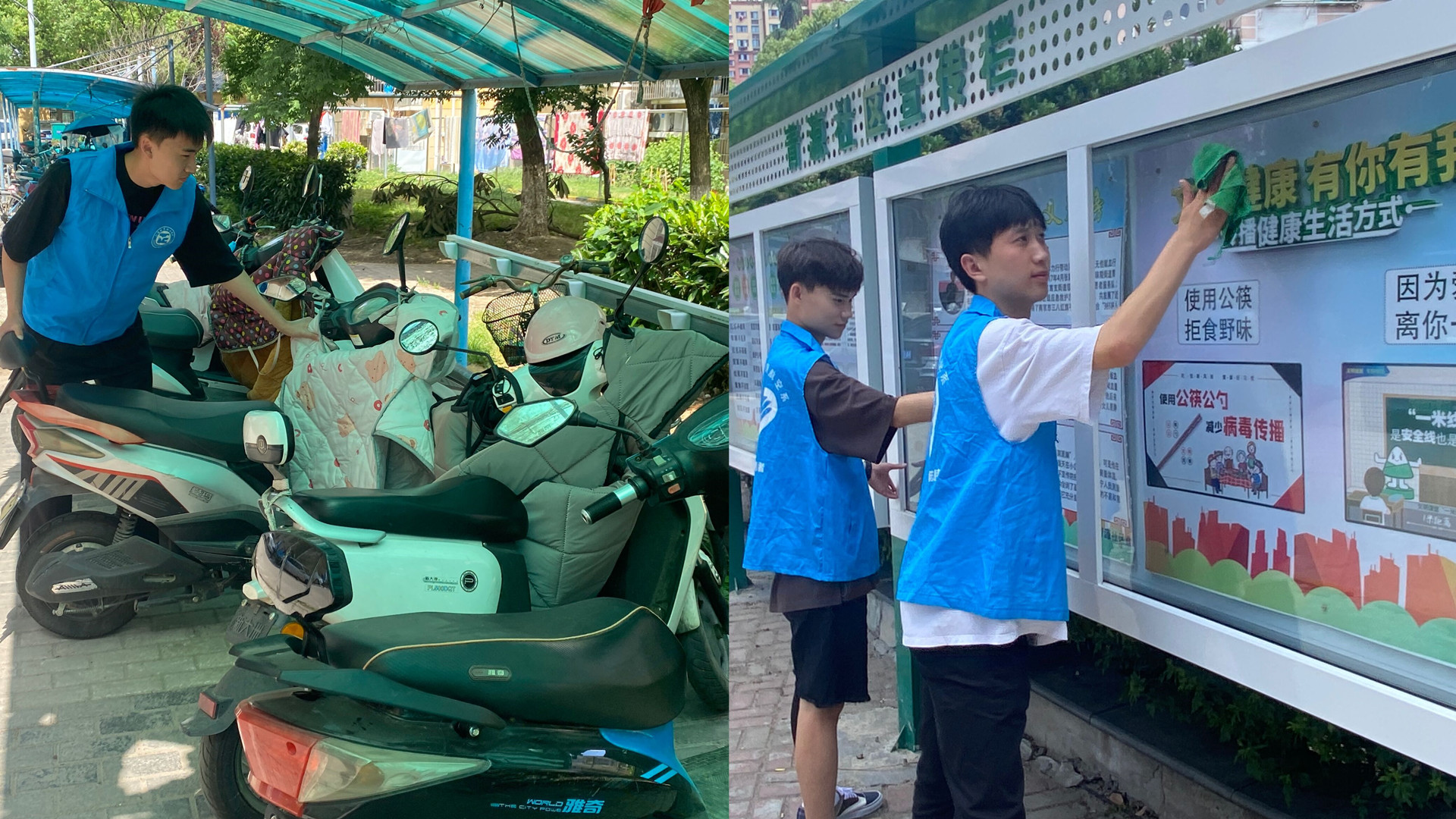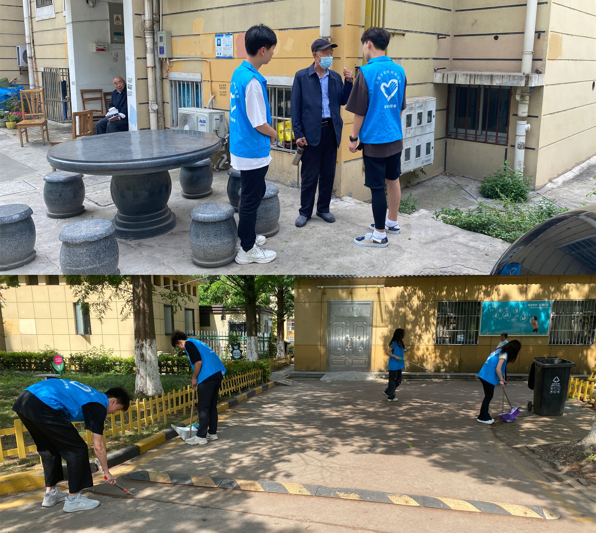 接着同学们对社区楼道、地面、宣传栏和停车场进行了整理和清扫,大学生志愿者们用实际行动全力打造了一个干净、整洁、优美的环境,提升了居民群众生活环境的舒适性、整洁性。