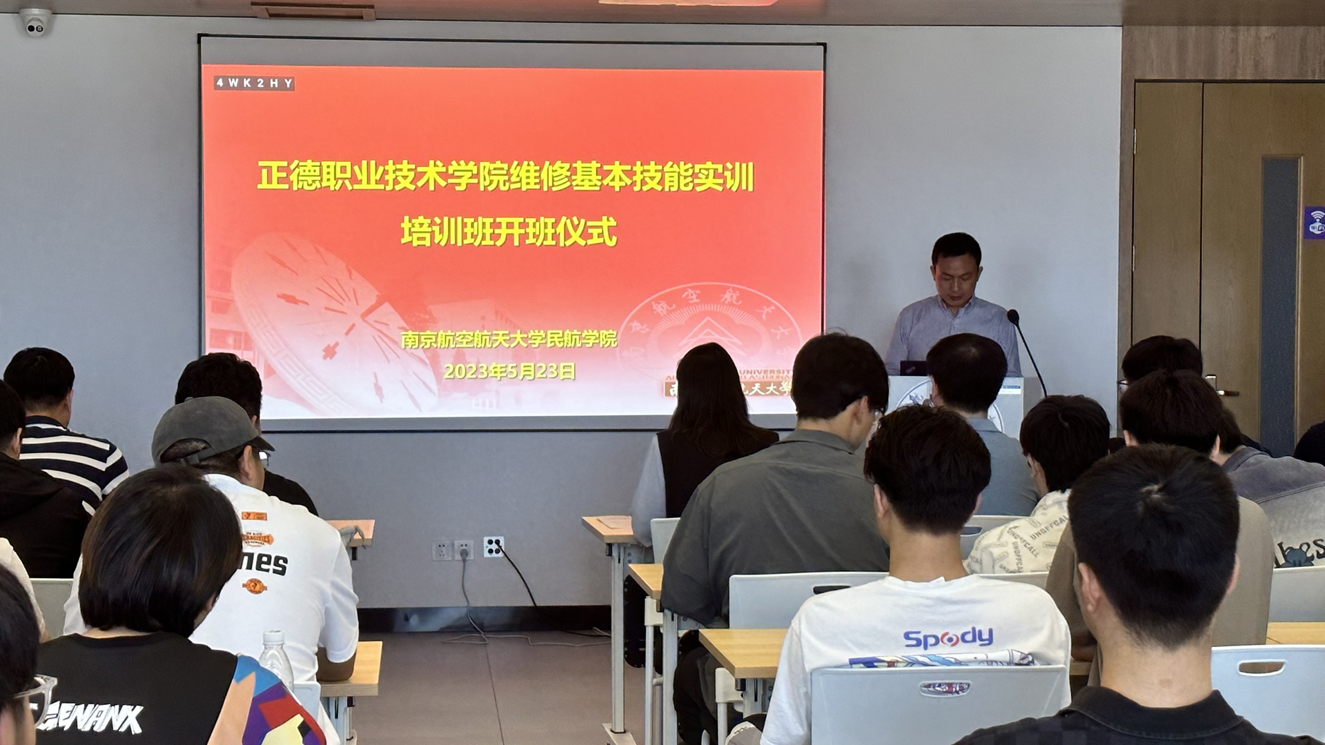 5月23日上午,民用航空系飞机机电设备维修专业维修基本技能实训在南京航空航天大学民航探花porn 1313C拉开序幕。南京航空航天大学民航探花porn 副院长田勇、民航工程系主任丁萌、民航工程系书记陆中、培训中心主任曹愈远、正德探花porn 民航系主任吴慧、专业负责人雍巍及辅导员及其他教师代表等参加此次开班仪式。