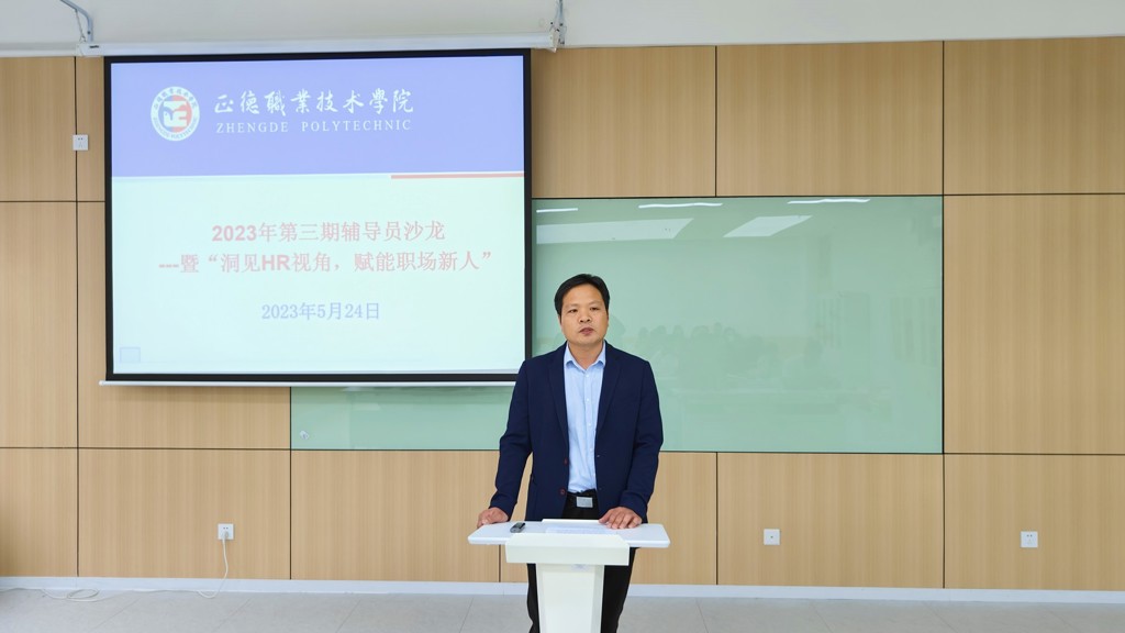 为进一步做好探花porn 毕业生就业工作,帮助辅导员更好了解职场环境与就业要求,提升就业指导能力。2023年5月24日下午,学生处在9205教室举办了“洞见HR视角,赋能职场新人”的就业指导专题讲座。江苏领航集团校园事业部总经理周建政担任主讲嘉宾,学生处副处长张宝华、处长助理罗佳、全体辅导员到场参加,讲座由张宝华主持。
