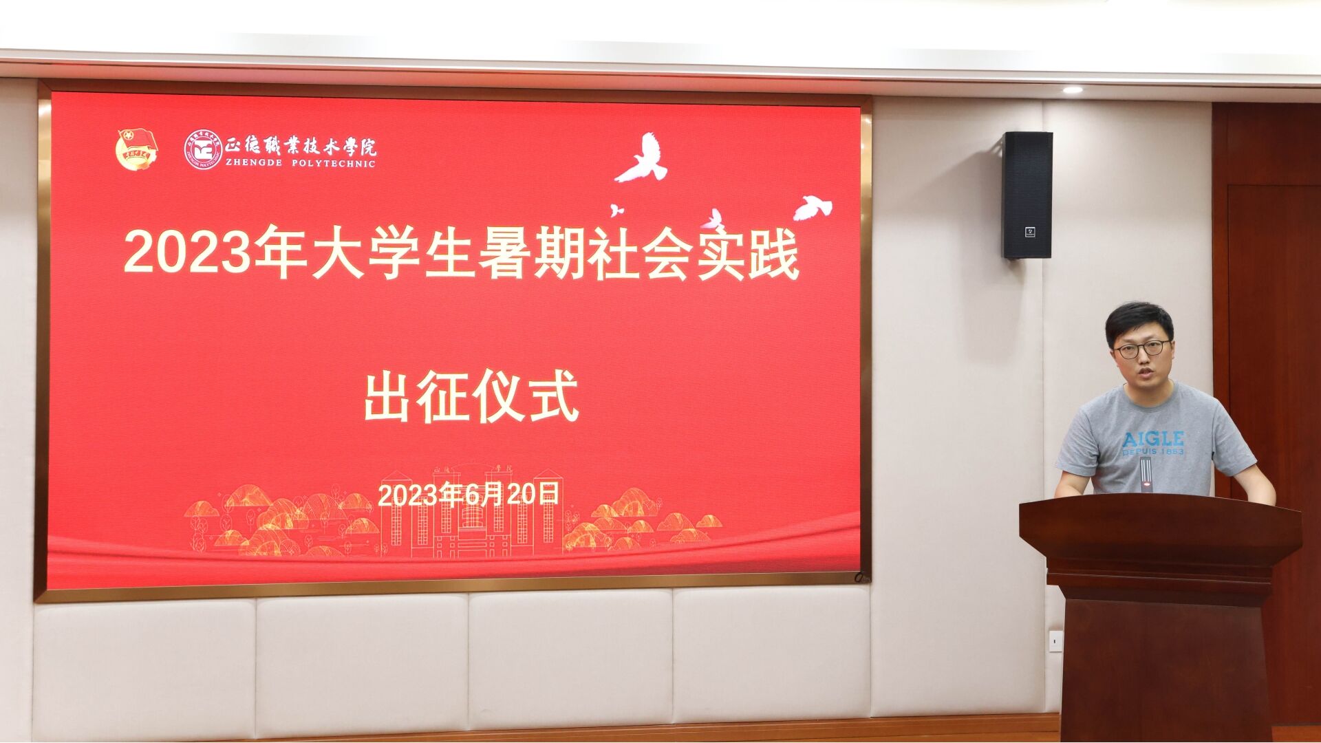暑期社会实践团队负责人电子与信息技术系魏宇同学代表各实践团队表示要在社会实践中严格要求自己,遵守规章制度,在挥洒青春汗水的过程中展现正德学子的青春风采。