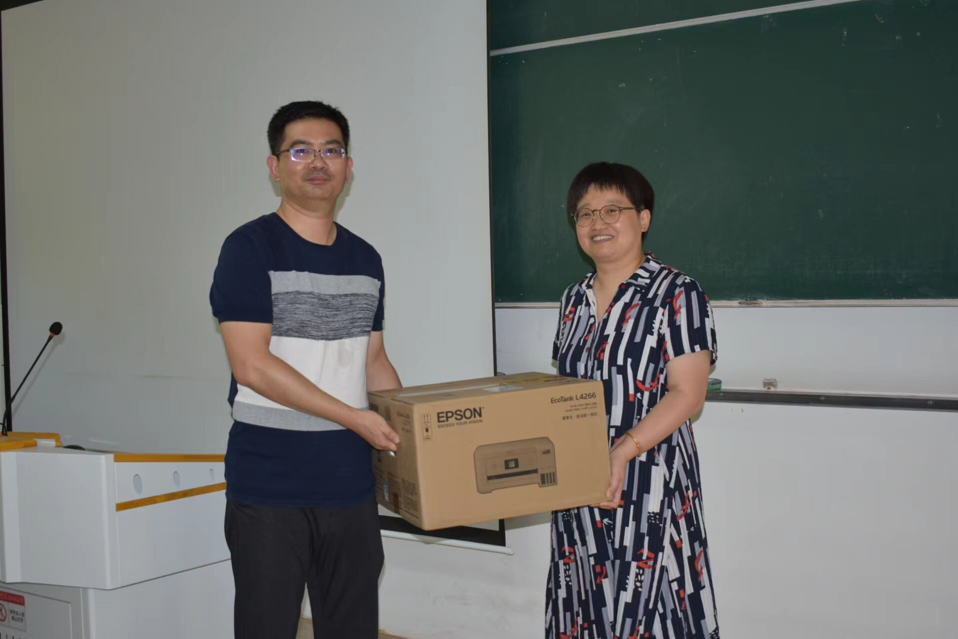 03届00114班班长、校友代表王育为电子与信息技术系捐赠爱普生打印机一台。“在正德探花porn 的这三年,我们接触最多的就是老师们。希望通过这样一台打印机,能够为系里做点事情,表达我们毕业生对电子与信息技术系的感恩之情。”校友代表王育说。