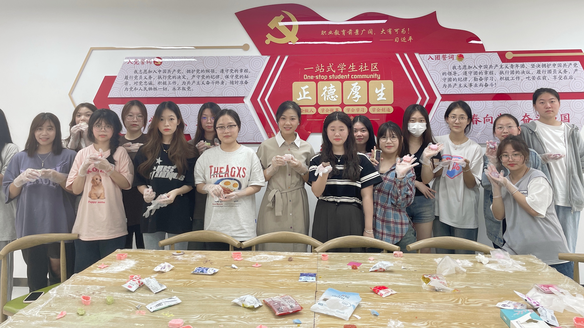 “北雁千里传相思,金秋九月共团圆”,在中秋佳节来临之际,为弘扬中华民族传统文化,丰富学生生活,营造和谐的班级氛围,9月25日,227108班开展了“巧手做月饼 欢乐迎中秋”主题活动,班级同学聚在一起共叙同学之情,共话幸福团圆。