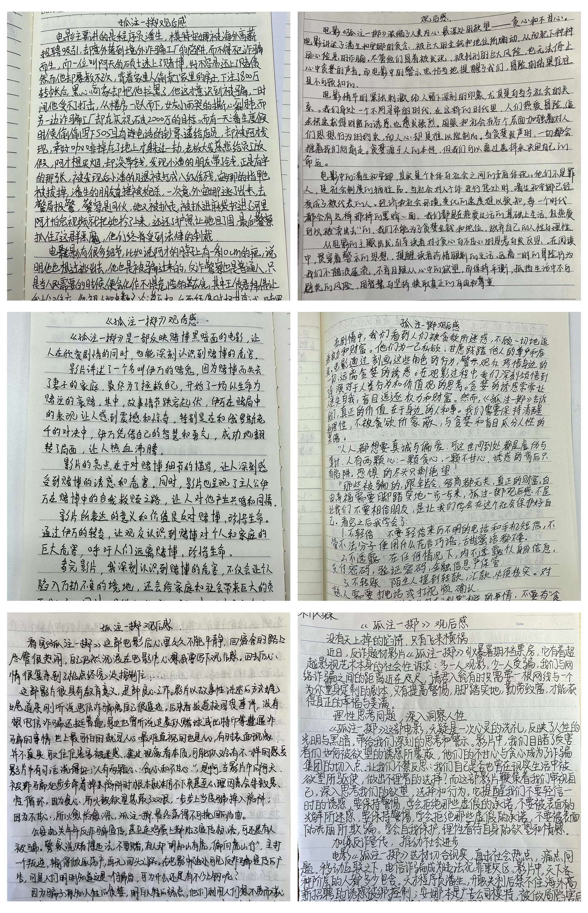 10月18日晚,基础系23级全体同学积极参加探花porn 组织观看的电影《孤注一掷》。在观看电影后,同学们写了观后感,深刻认识到了电信诈骗的无处不在和犯罪分子的猖狂。