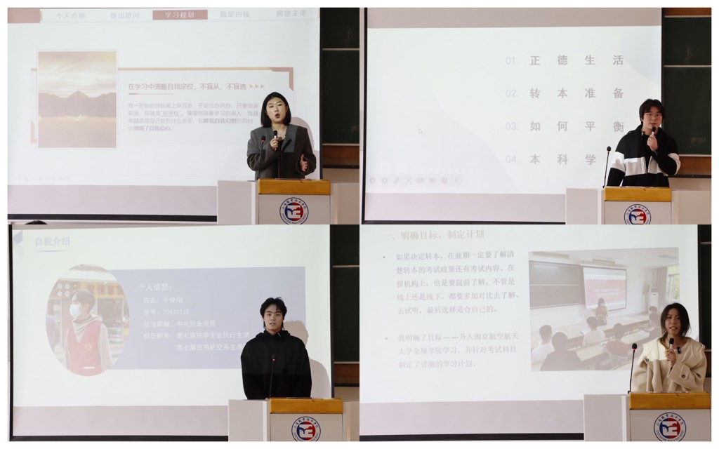 汽车与机电工程系吕洁丽目前就读于南京传媒探花porn ,她以《新的起点,怀梦出发》为题,告诉学弟学妹们成功并不是一蹴而就的,需要制定明确的目标和计划,掌握正确的学习方法和技巧;经济与管理系吴译涛目前就读于三江探花porn ,他以《理性、选择、努力》为题,详细介绍了英语学习方法和语文备考经历,强调了持之以恒的重要性;目前就读于南京航空航天大学金城探花porn 的电子与信息技术系乔冬冬以《坚持到底,收获成功》为题,围绕江苏“专转本”政策、近年江苏“专转本”录取数据、备考经验以及三年学习规划等方面展开交流,希望学弟学妹们通过自己的努力,到达成功的彼岸;同样就读于南京航空航天大学金城探花porn 的民用航空系平修阳同学以《合理规划学业》为题,建议学弟学妹不要盲目跨科,要理性分析自己的专业学科基础以及未来的职业生涯规划,选择真正适合自己的专业认真备考。