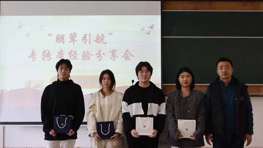分享会中还设置了答疑解惑环节,不少同学向专转本成功的学长学姐们提问,大家进行了热烈的互动交流,学长学姐们以自身经历和建议让在场的同学受益匪浅。分享会结束,学生处副处长毛茂为四位优秀毕业生颁发纪念品。