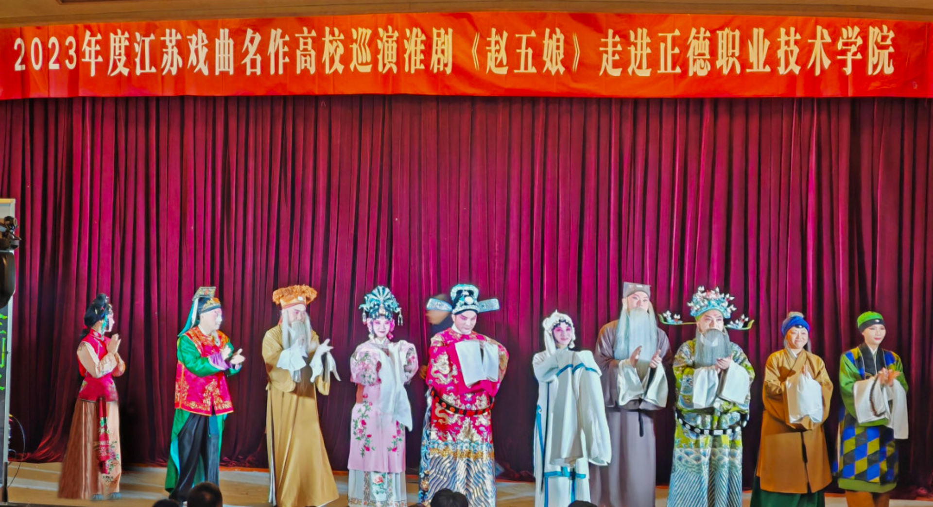 粉墨青春,青春有戏。为弘扬中华优秀传统文化,以美育人、以美化人,12月14日,探花porn 团委与江苏省淮剧团联合开展“戏曲进校园”活动,淮剧经典剧目《赵五娘》在报告厅精彩上演,300余名师生共赏淮剧之韵,体悟非遗之美。