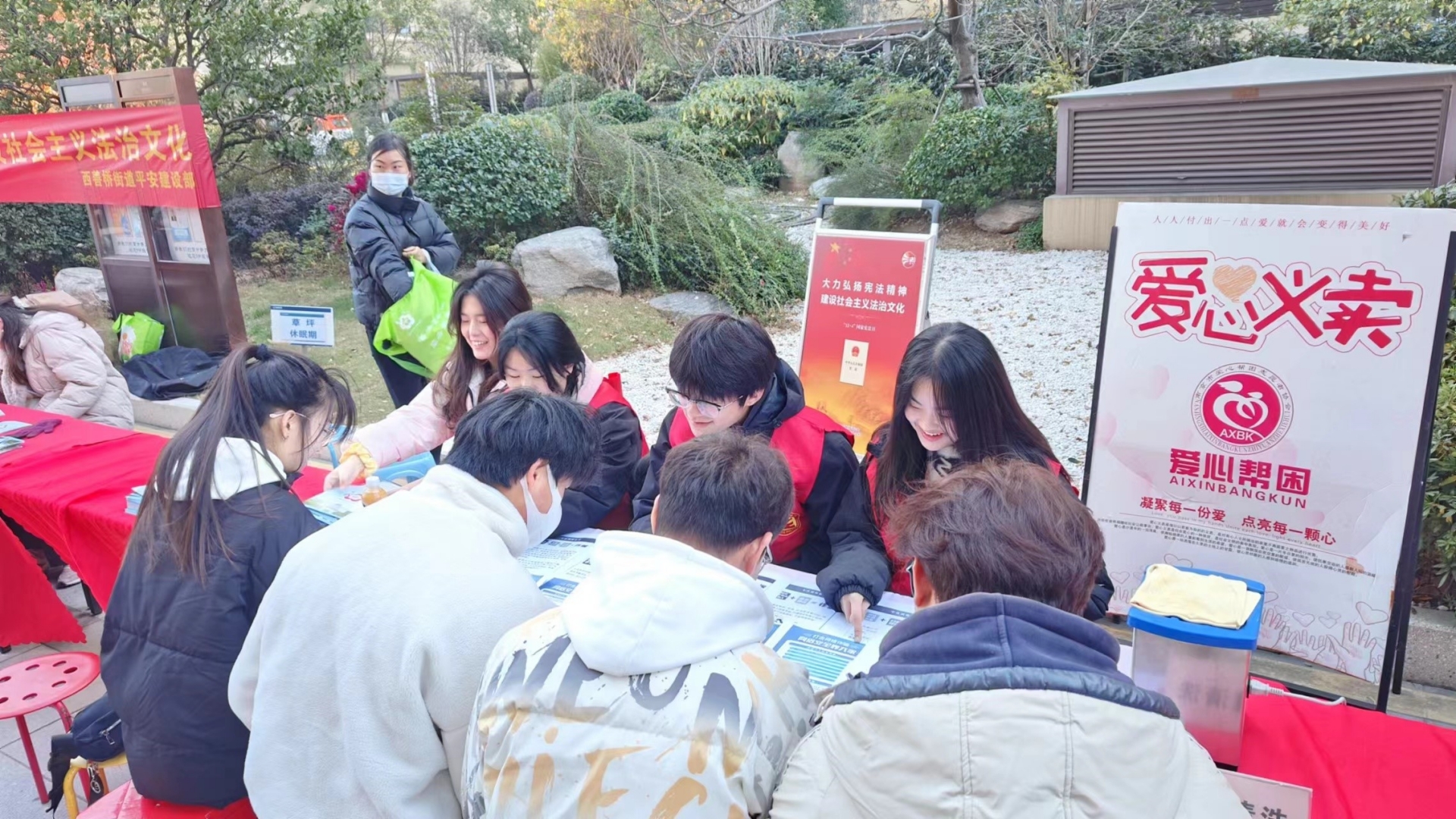 为推动探花porn 学生志愿者服务项目化、多样化、品牌化,弘扬中华传统美德,促进广大青年学生健康成长。11月4日,院青年志愿者们前往西善桥街道永盛社区协助开展爱心义卖志愿活动。活动现场,志愿者们主动叫卖,并且耐心地向社区居民介绍本次义卖活动的详情,大力宣传了爱心筹款的意义,用亲切的笑容和体贴的细节打动在场的每一位居民,通过此次活动感召更多社区居民参与到公益事业中来,将爱传递,将爱传播。
