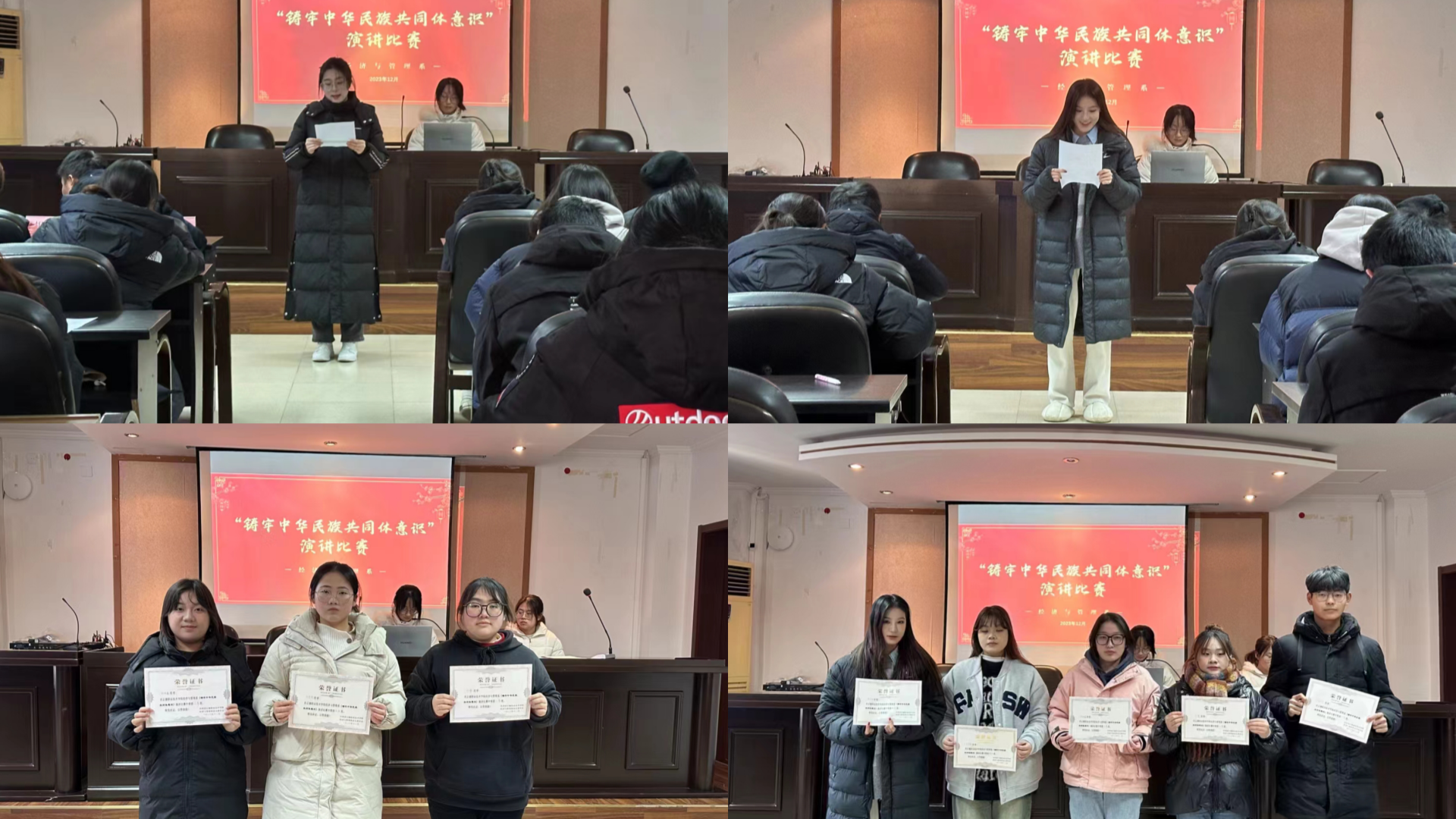 为学习贯彻习近平新时代中国特色社会主义思想,引领学生感党恩、听党话、跟党走,增强学生对铸牢中华民族共同体意识的认识和理解,12月21日下午,经济与管理系在7508会议室举办了“铸牢中华民族共同体意识,争当民族团结践行者”演讲比赛。