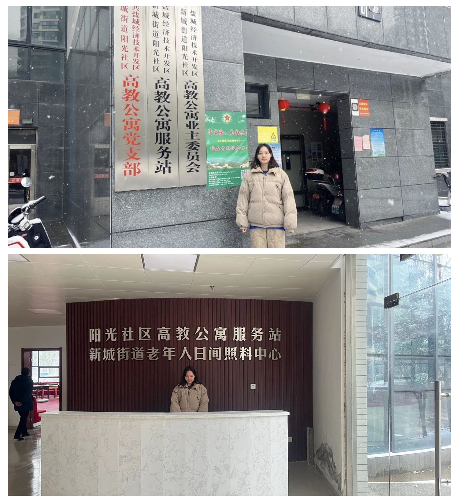 前往老年人日间照料中心参加志愿服务,以爱心超市、老年人图书室、老年健身中心、社区卫生服务站、老年活动室为平台陪伴老人,让老年人真正实现家门口的“老有所依、老有所养、老有所乐”。