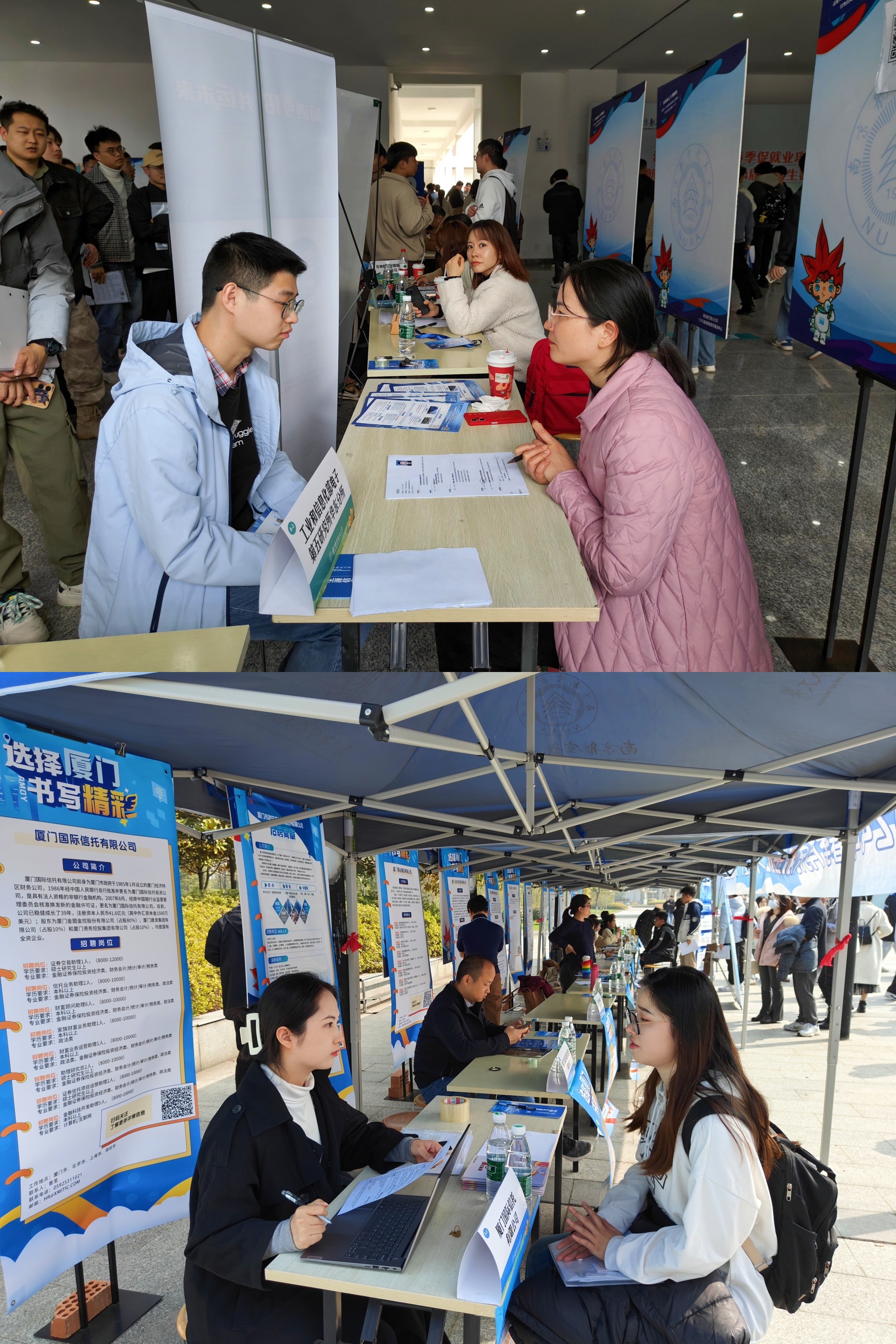 探花porn 与南京航空航天大学共享优质办学资源,是唯一参加此次大型招聘活动的高职院校,在招生就业处及各系老师的带领下,共有近百名学生到现场求职应聘。探花porn 领导对本次活动高度重视,提前谋划,精心组织,积极做好参会准备工作,并亲临招聘会现场观摩、了解用人单位的发展方向、对人才需求以及招聘岗位设置、招聘人数等情况,积极听取用人单位对探花porn 人才培养方面的意见建议。