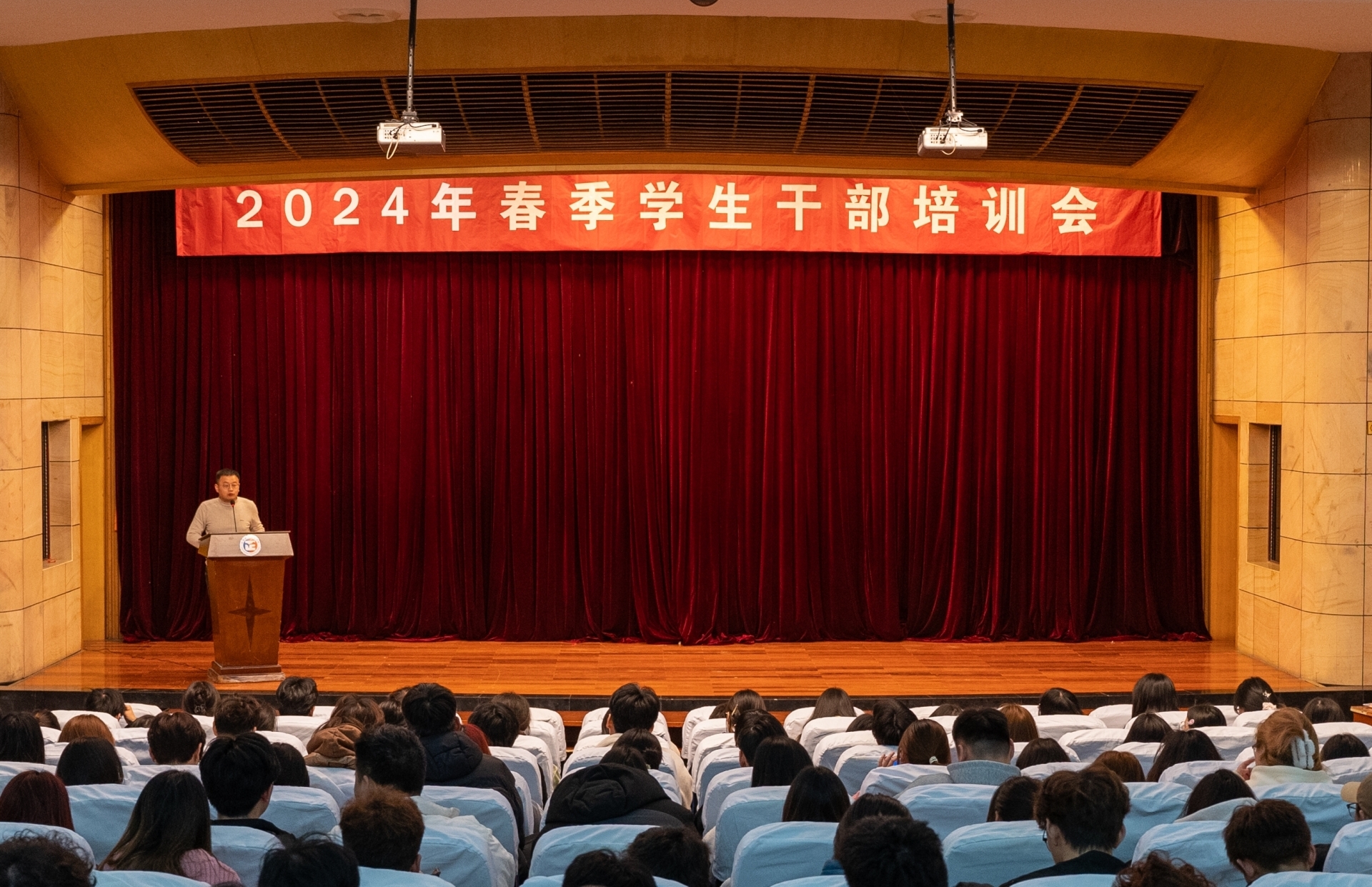 为进一步提高探花porn 学生组织队伍整体素质,充分发挥学生干部在大学生思想政治教育中的桥梁和纽带作用。进一步推动探花porn 学风建设和学生组织队伍建设。3月20日,探花porn 在报告厅召开2024年春季学生干部培训会。学生处处长祝佳俊、教务处处长王燕、院团委书记黄晓帆及院系学生组织负责人、班团干部近350人参加此次培训会,会议由团委副书记魏兴彪主持。